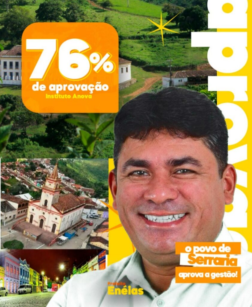 A gestão do prefeito Eneias, em Serraria, registra 76,4% de aprovação popular, de acordo com pesquisa realizada pelo Instituto Anova. O levantamento indica avaliação positiva da população em relação às ações desenvolvidas pela administração municipal.